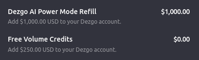 - Top up your Dezgo account with an amount that reaches or surpasses the thresholds detailed below.